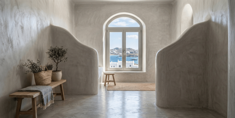 Μεταφέρουμε την αισθητική των Κυκλάδων στον χώρο σας. Ειδίκευση στην πατητή τσιμεντοκονία για δάπεδα και τοίχους υψηλής αισθητικής.